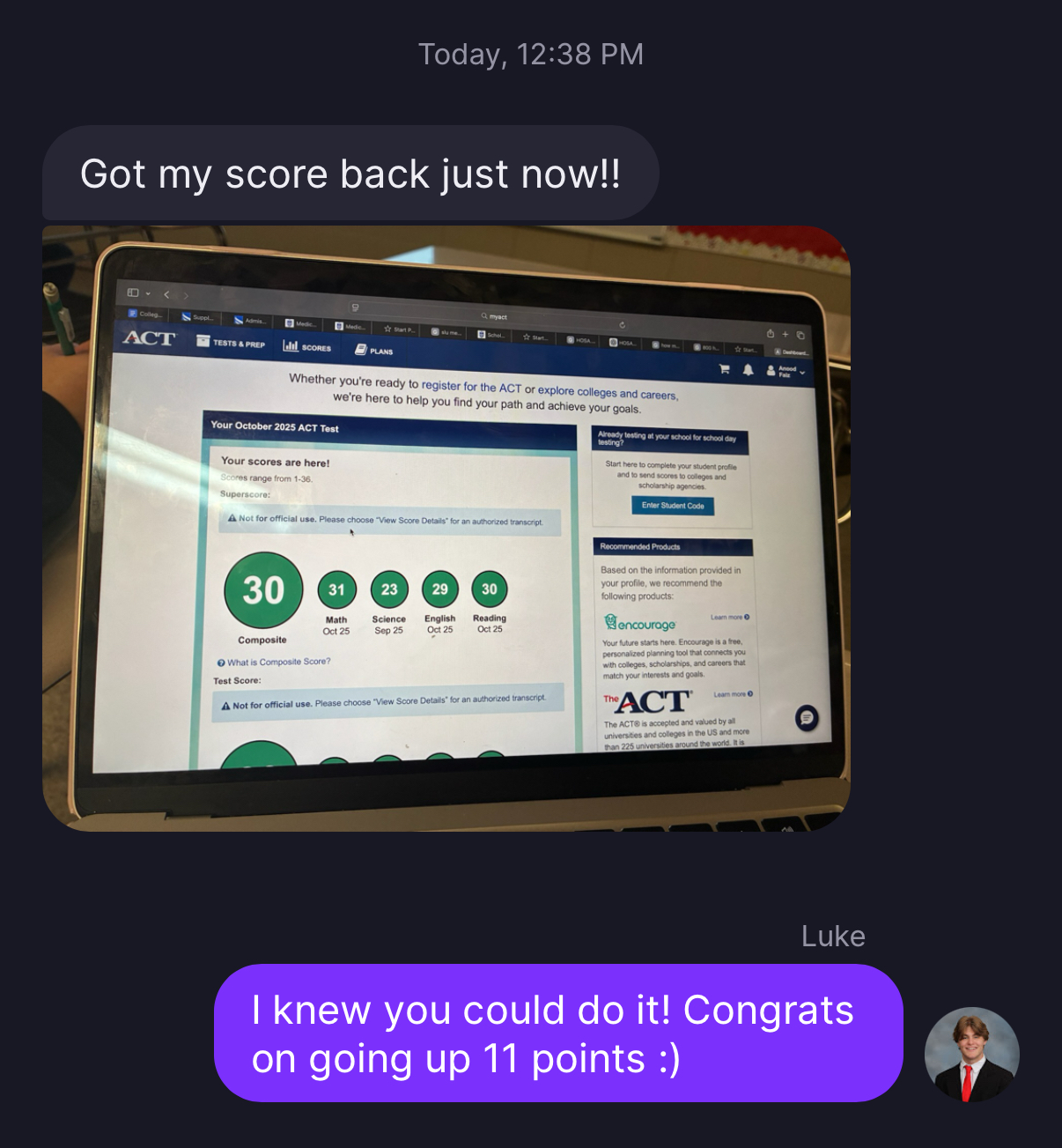 P.S: He got a 33 on his next ACT and earned over $110,000 in scholarships
